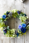 結婚式やお引越しのお祝いにおすすめ♪ ブルー×パープルと落ち着いたカラーのリース。 |