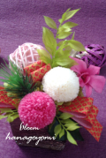 デンファレ、ポンポンマム、アイビー、アジサイ、ラスカス、 フェイクの松など |